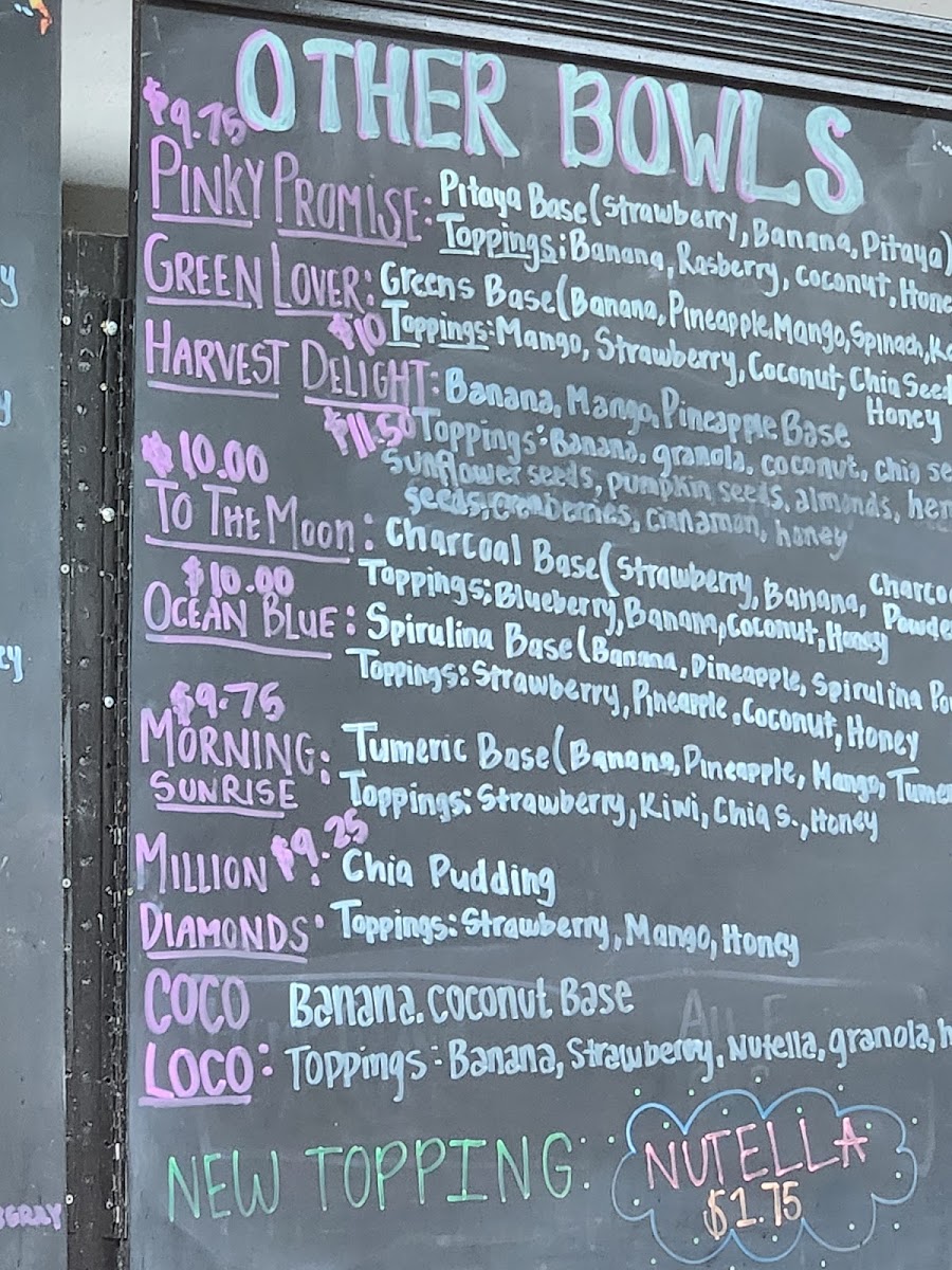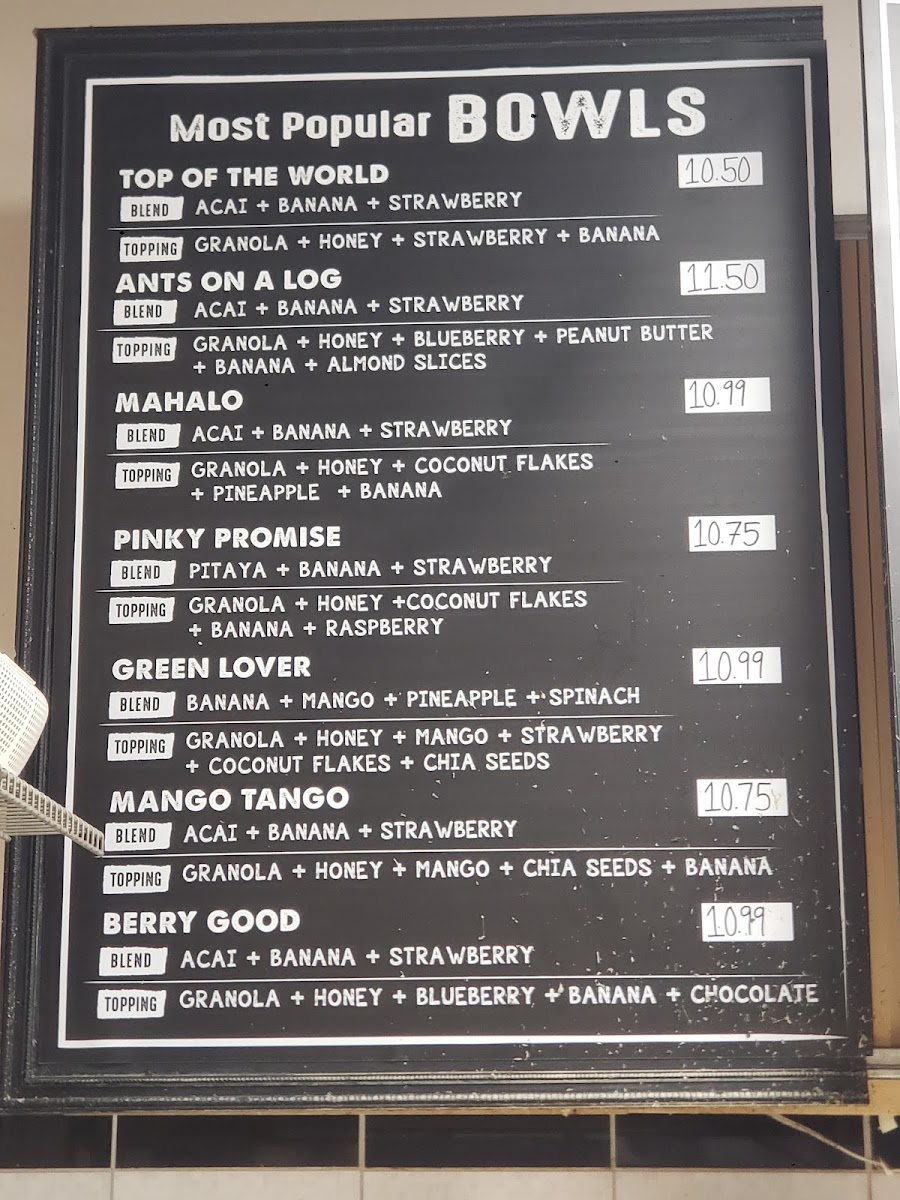 - Popular Bowls: Don’t miss the “Ants on a Log” and “Mahalo,” celebrated for their rich flavors and generous toppings.
